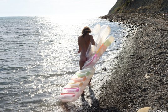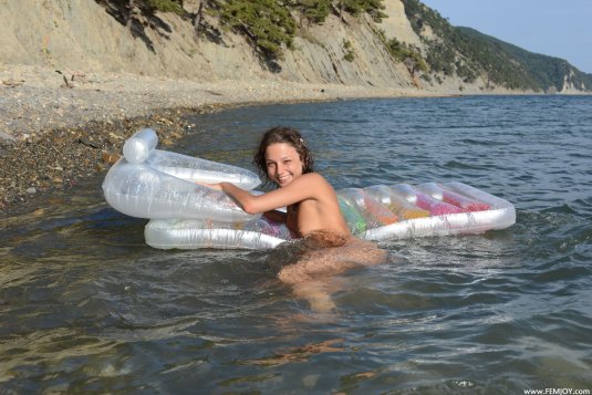 Аппетитненькая девушка без комплексов Ксюша показала себя на пляже во всей красе. Она абсолютно не стесняясь залезла на надутый матрас и сняла с себя купальник. Оставшись совсем голой, малышка отрывалась на берегу и на воде. Ее мокрая киска сладко смотрится в кадре, а влажные бедра и подтянутая попка невероятно заводят всех мужчин.