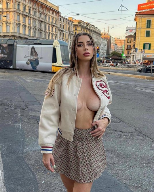 20. Девушка показывает сиськи на улице