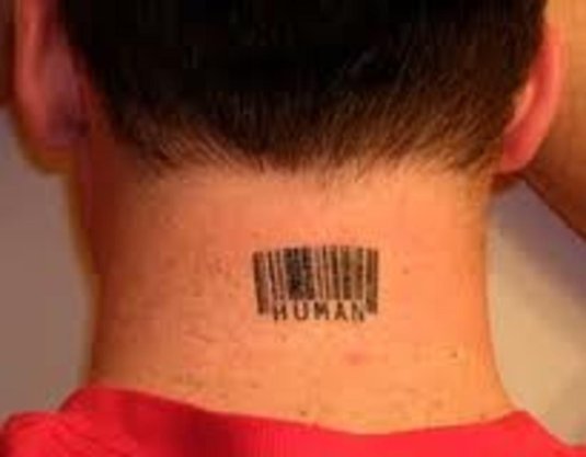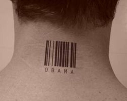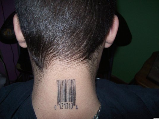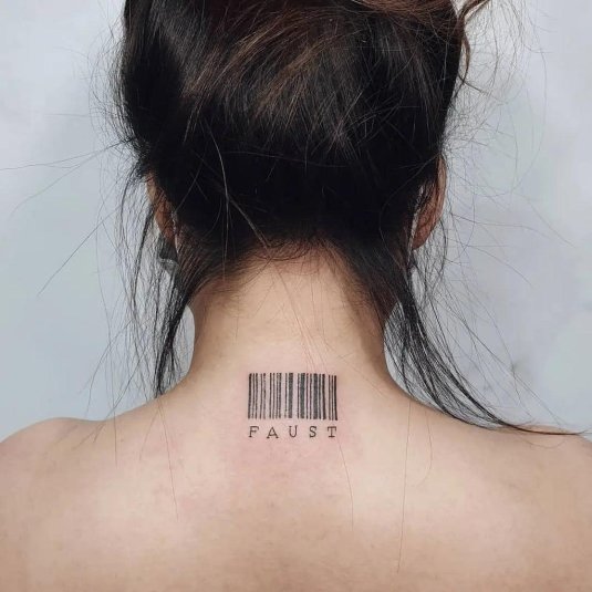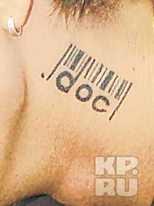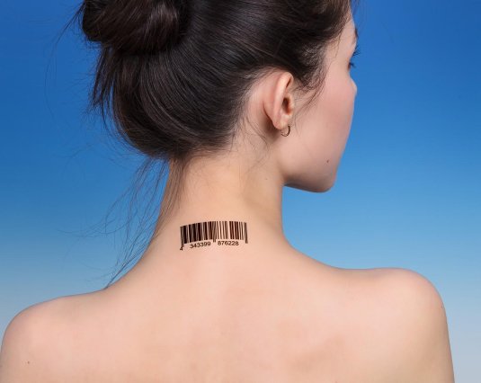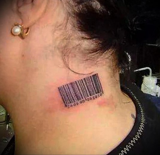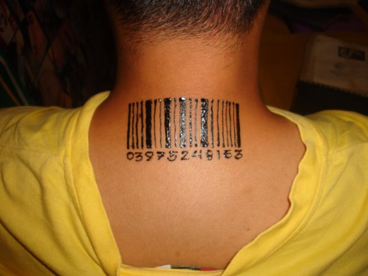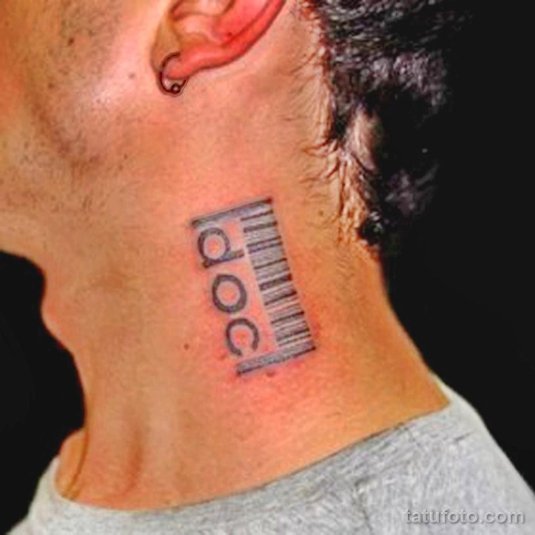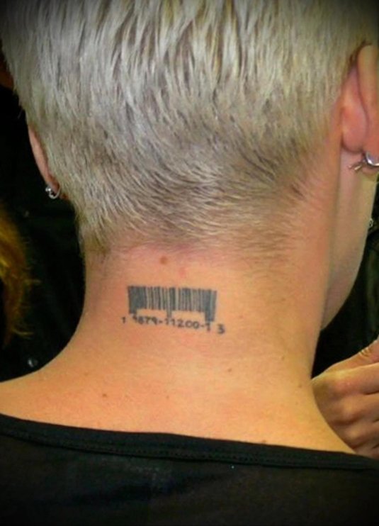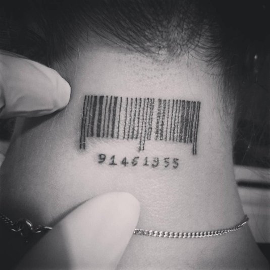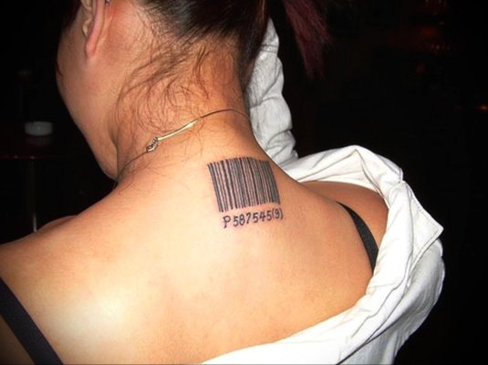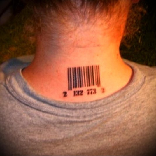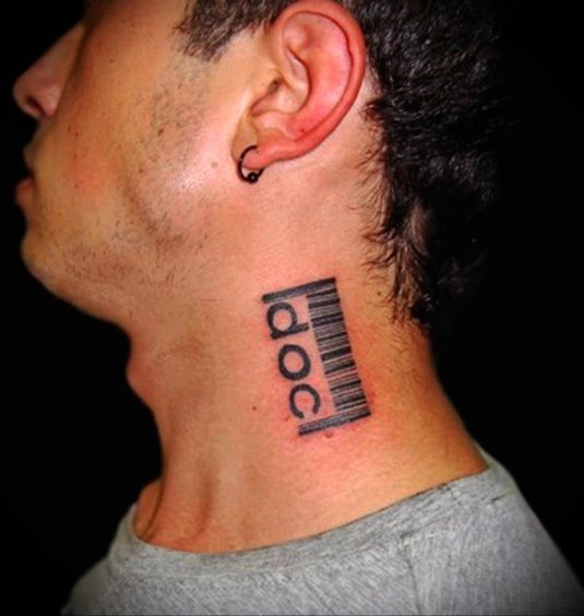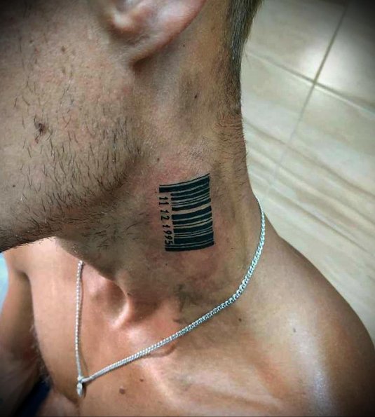 Фото: Татуировка штрих код на шее