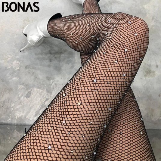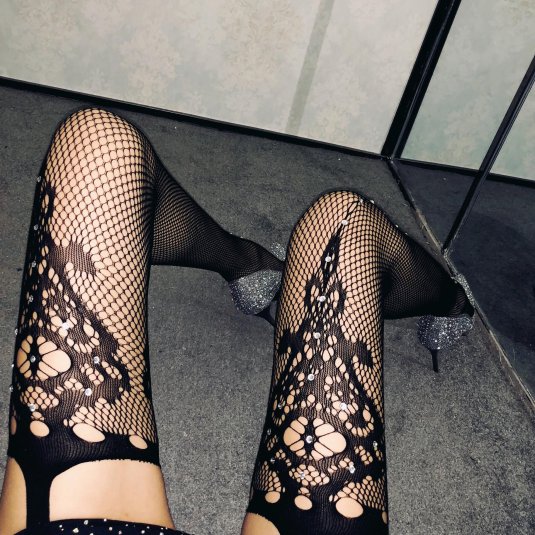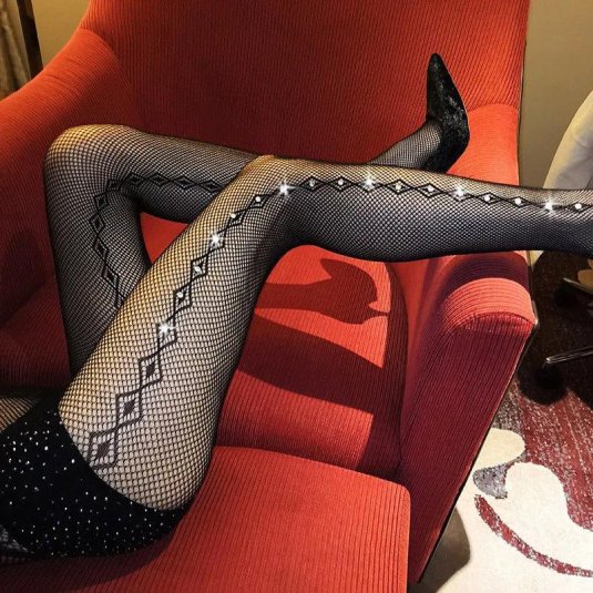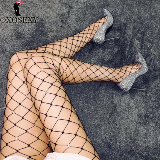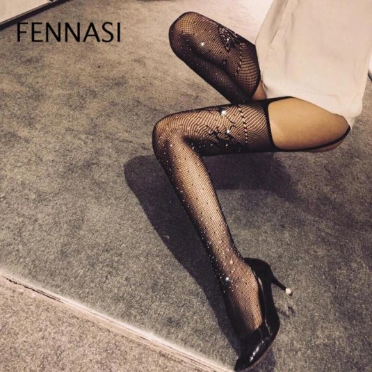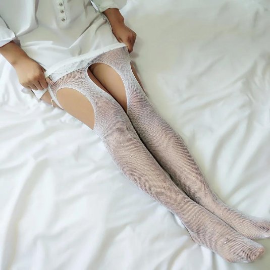 18. Чулки в сетку со стразами