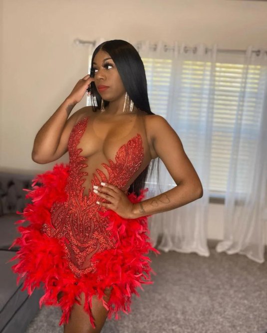 Фото: Коктейльное платье с перьями