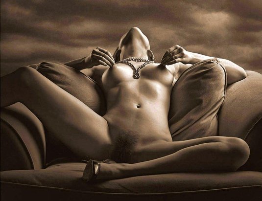 16. Красивая голая женщина в пеньюаре